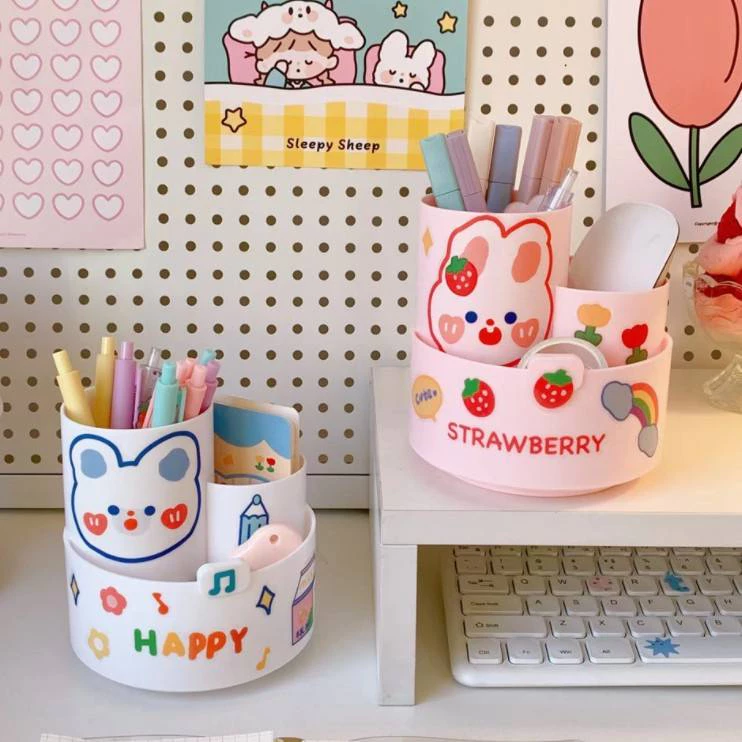 กล่องเก็บของ กล่องใส่ปากกาหมุนได้❤️ฟรีสติกเกอร์❤️